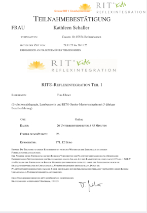 Ich bin zertifizierte Reflexintegrationstrainerin nach RIT® und kann Ihrem Kind fachlich fundiert, u.a. bei Konzentrationsschwäche, Lese- und Rechtschreibproblemen, Bewegungsunruhe, fehlender Impulskontrolle helfen.